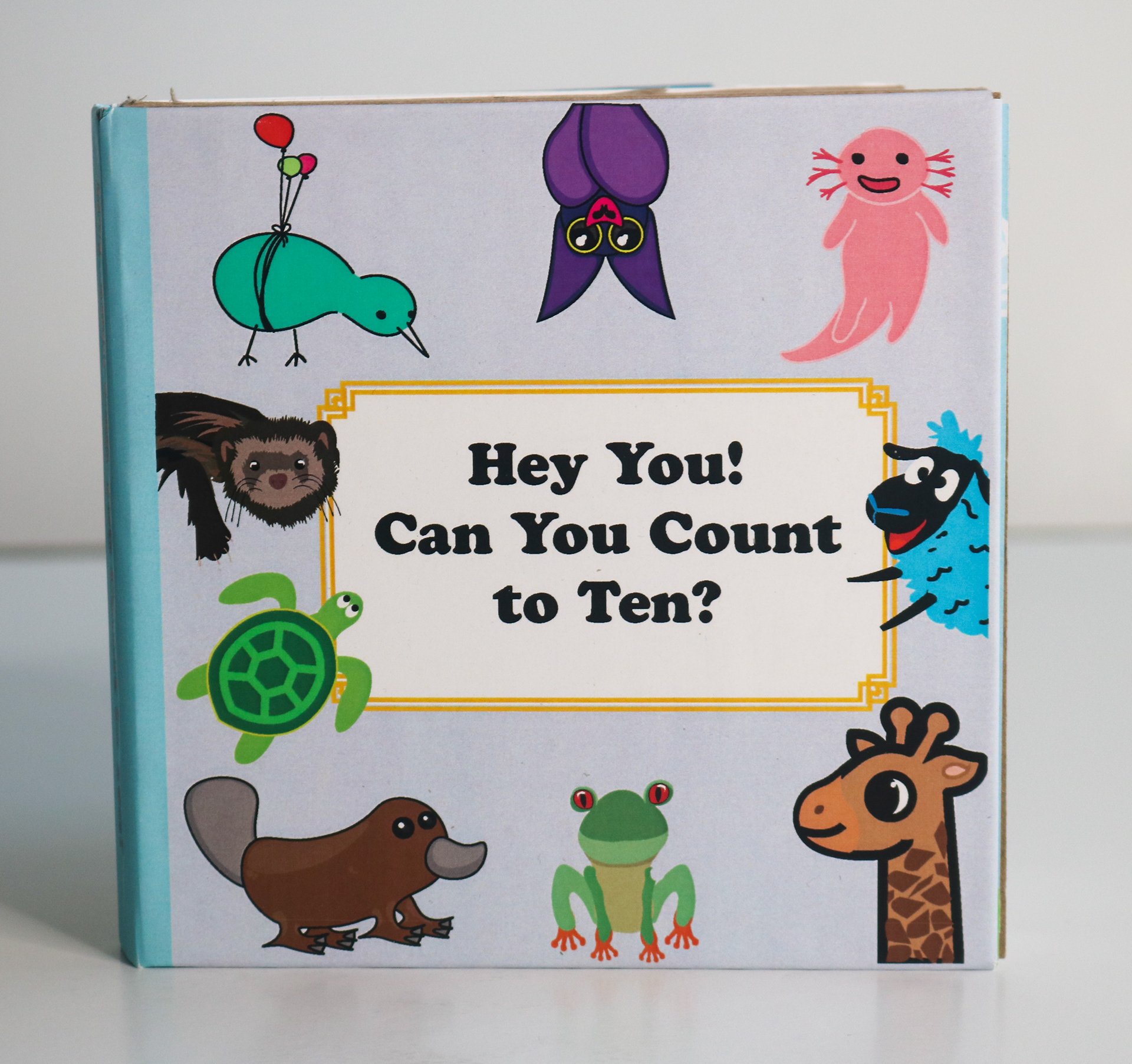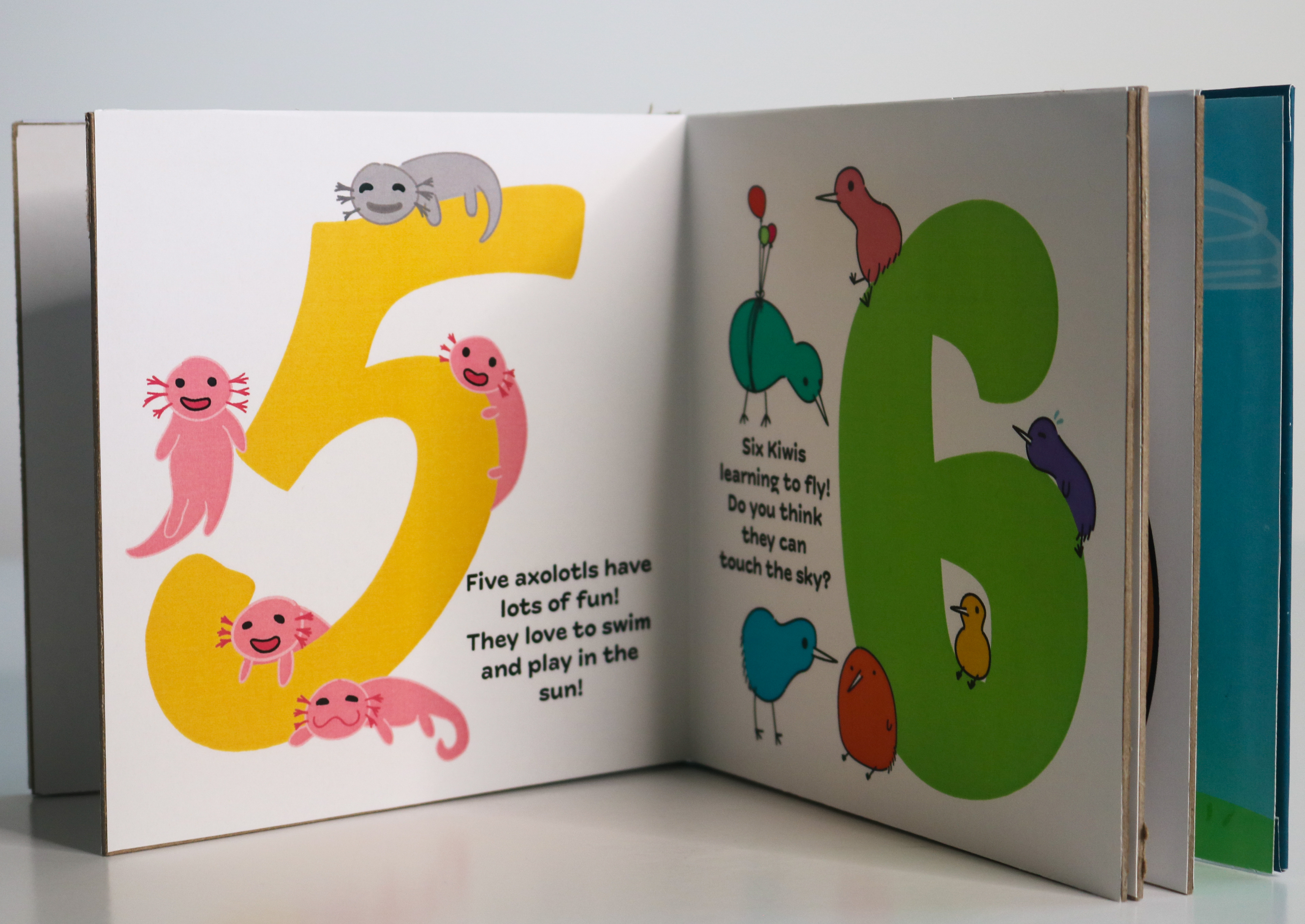 This is a board book for children that was made in a collaboration with some of my class mates. We each created graphics for two numbers, mine being five and six. We also were individually responsible for the rhymes, fonts used, and the back cover.
